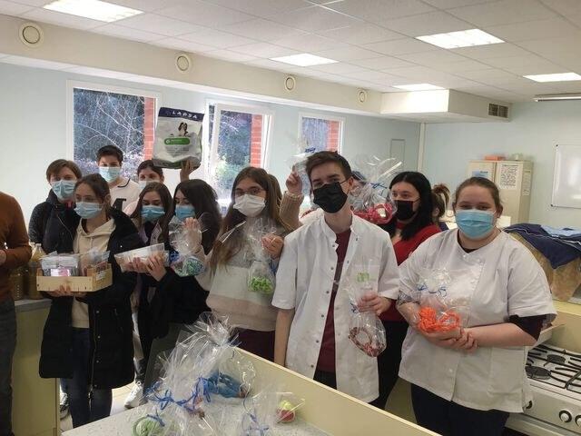 Après plusieurs semaines de pratique en "cuisine, hygiène et animation", les élèves de la classe de seconde A et B ont pu remettre à notre partenaire « La maison pour tous » de la Gorgue leurs diverses réalisations au profit des SDF de Lille : Potage avec des légumes de saison, calendriers avec des mots réconfortant, croquettes et jouets pour les animaux des SDF ...